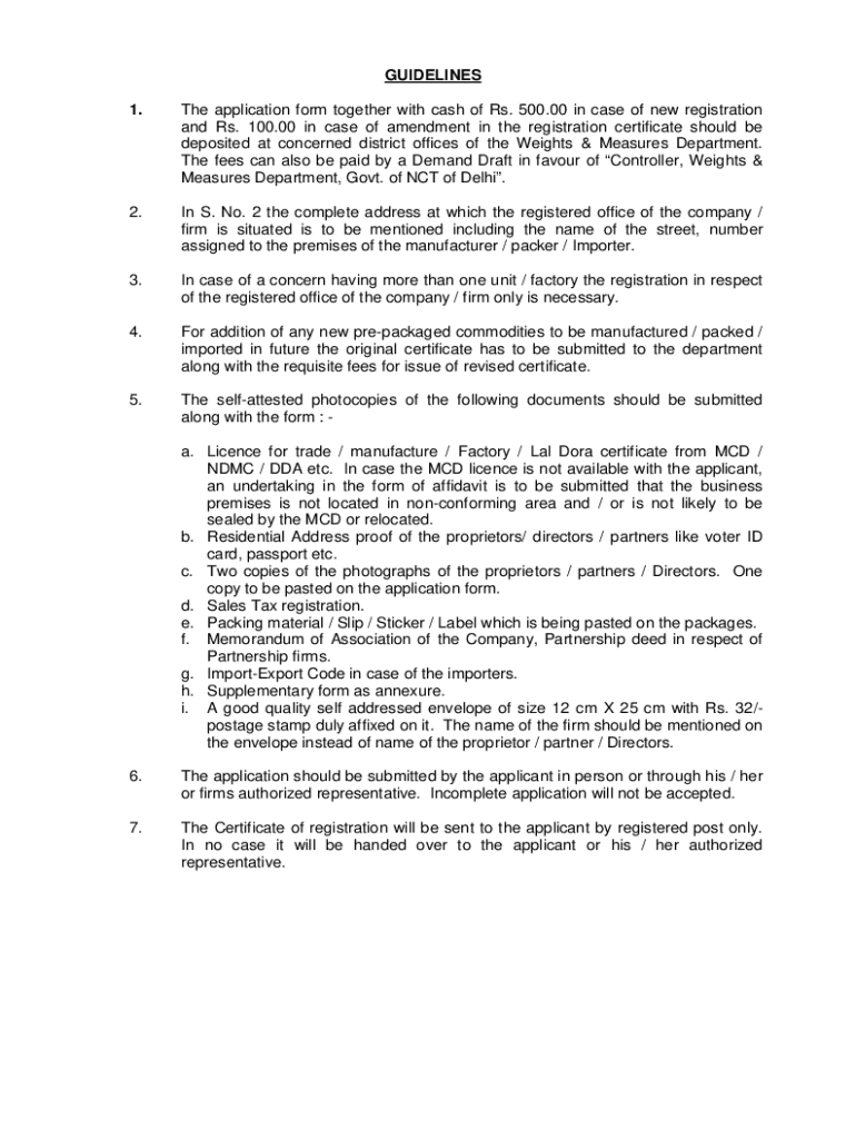 GUIDELINES 1. The application form together with cash of Rs. 500.00 in case of new registration and Rs. 100.00 in case of amendment in the registration certificate should be deposited at concerned