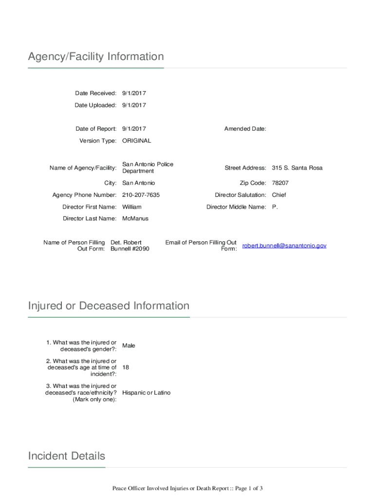 Date Uploaded: 9/1/2017Date of Report: 9/1/2017Amended Date:Version Type: ORIGINALName of Agency/Facility:San Antonio Police