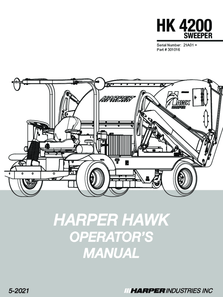 HK 4200 SWEEPER Serial Number: 21A01 + Part # 301016HARPER HAWK OPERATORS MANUALHK420052021HK4200Thank you for purchasing a Harper Hawk. As with all Harper products, the Harper Hawk has been developed