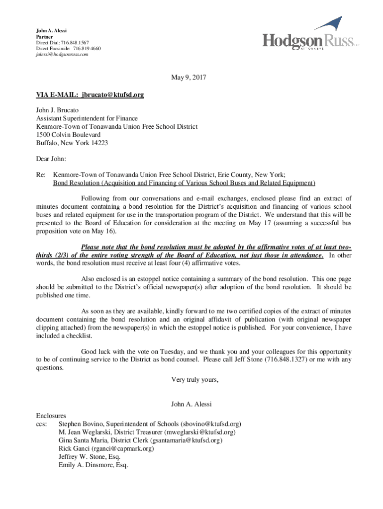 Get the free 03-Bond Resolution - Bus Purchase. ...