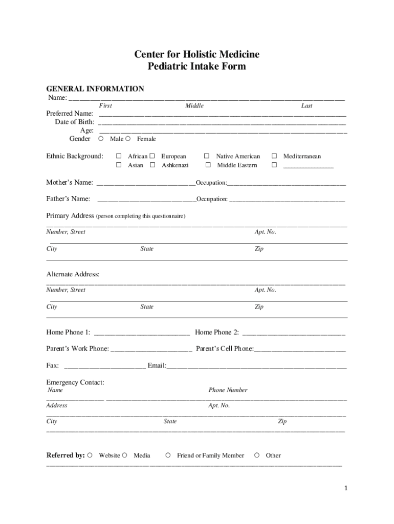 Get the free Vitality Integrative Medicine Pediatric Intake Form