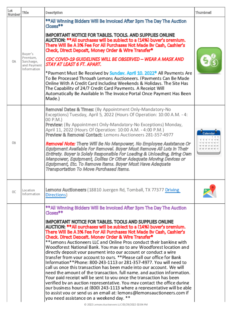 NumberDescriptionThumbnail**All Winning Bidders Will Be Invoiced After 3pm The Day The Auction