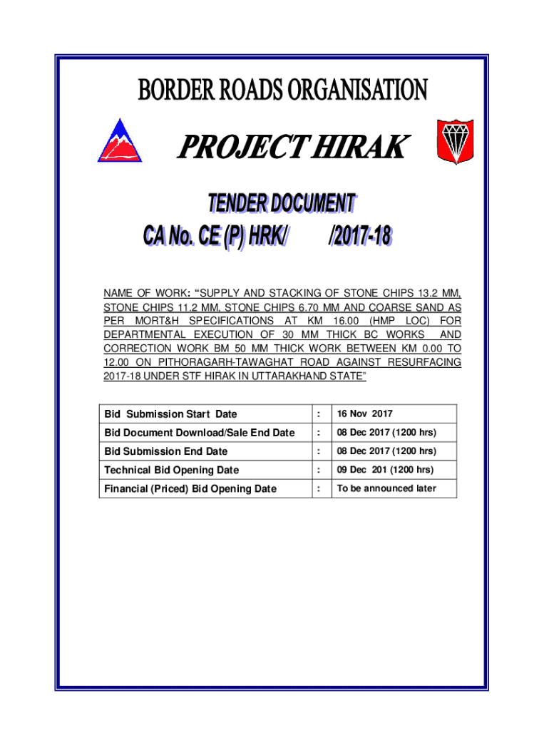 NAME OF WORK: SUPPLY AND STACKING OF STONE CHIPS 13.2 MM,
