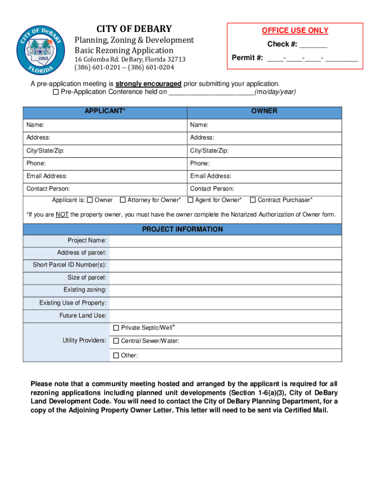 Get the free Planning, Zoning & Development Basic Rezoning Application