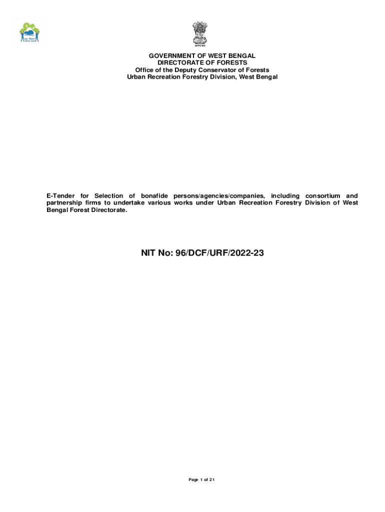 GOVERNMENT OF WEST BENGAL DIRECTORATE OF FORESTS Office of the Deputy Conservator of Forests Urban Recreation Forestry Division, West BengalETender for Selection of bona fide persons/agencies/companies,