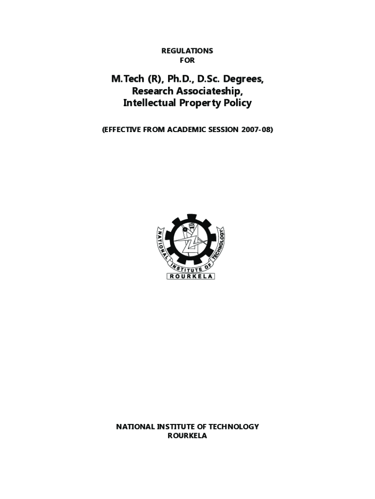 FORM. Tech ®, Ph.D., D. Sc. Degrees,