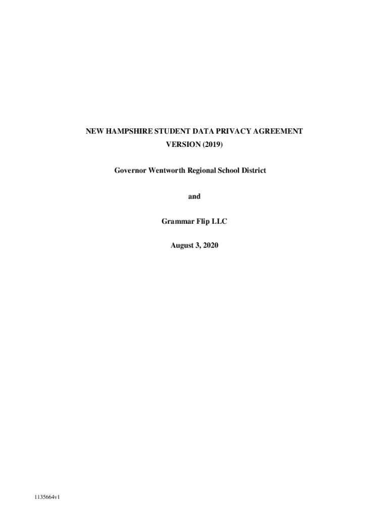 NEW HAMPSHIRE STUDENT DATA PRIVACY AGREEMENT VERSION (2019) Governor Wentworth Regional School District and Grammar Flip LLC August 3, 20201135664v1This New Hampshire Student Data Privacy Agreement
