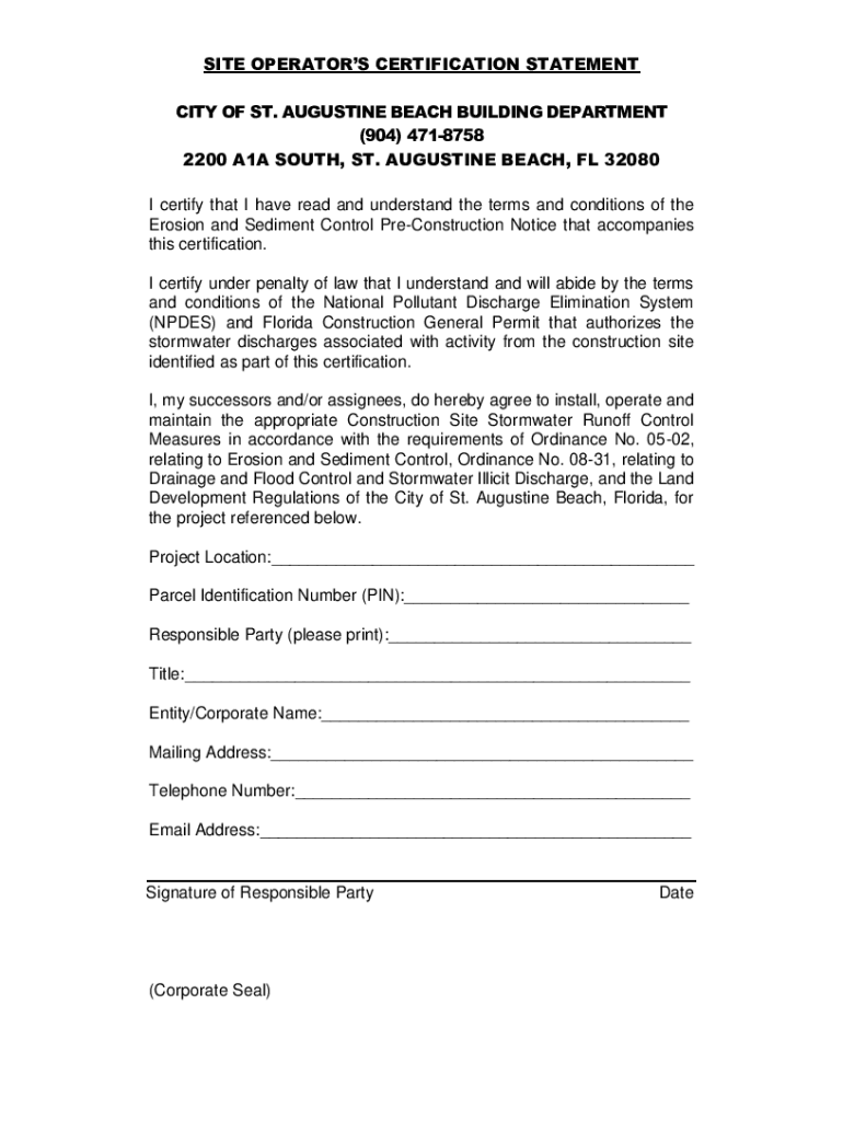 Get the free EROSION AND SEDIMENT CONTROL--SITE OPERATOR'S STATEMENT