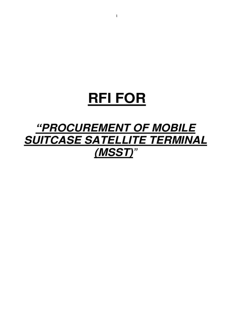 1RFI FOR PROCUREMENT OF MOBILE SUITCASE SATELLITE TERMINAL (MOST)2REQUEST FOR INFORMATION FOR PROCUREMENT OF MOBILE SUITCASE SATELLITE TERMINAL (MOST)1. The Ministry of Defense, Government of India,