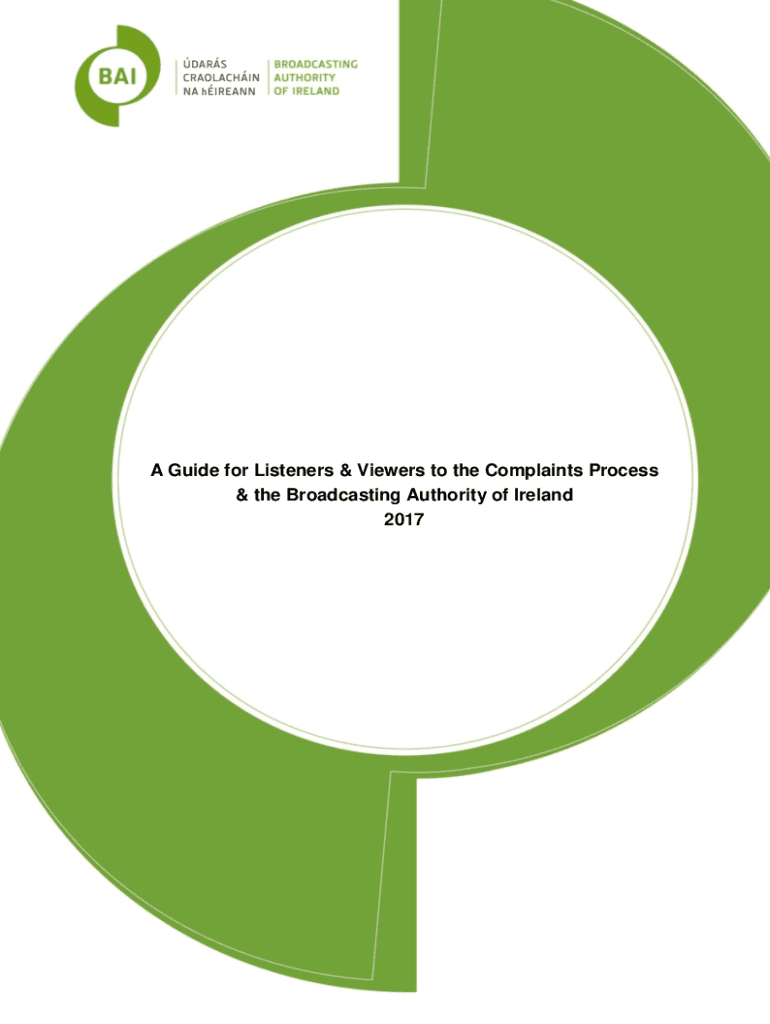 A Guide for Listeners & Viewers to the Complaints Process & the Broadcasting Authority of Ireland 2017Introduction Any viewer or listener who is not satisfied about broadcasting content on an Irish