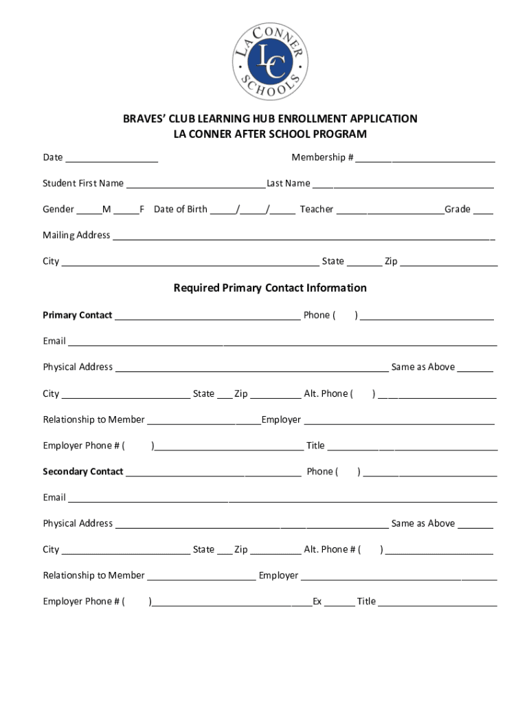 Get the free BRAVES' CLUB LEARNING HUB ENROLLMENT APPLICATION LA ...