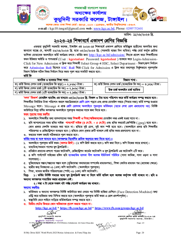 Voicemail : kgc10.tangail@gmail.com web: www.kgc.ac.bd, Phone: 02997752601http://kgc.ac.bd/admission/