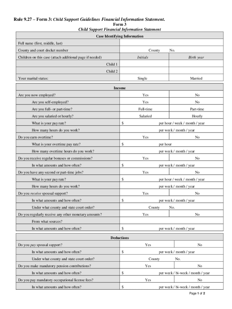 Rule 9.27 Form 3: Child Support Guidelines Financial Information Statement.