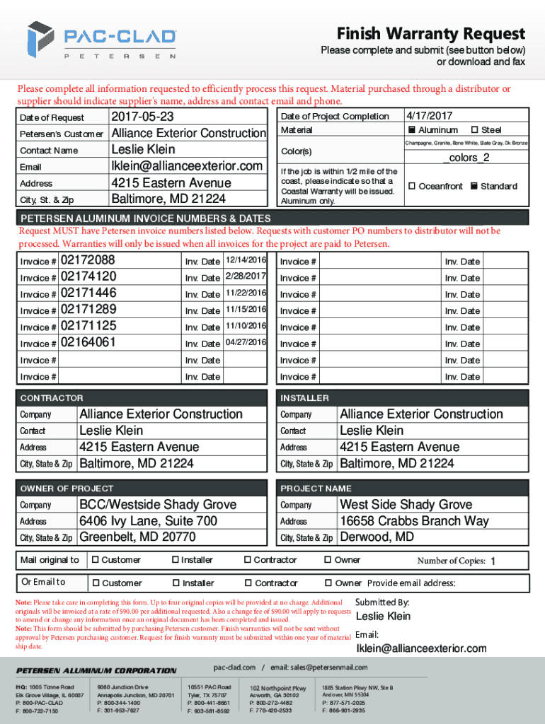 How to fill out alliance exterior construction