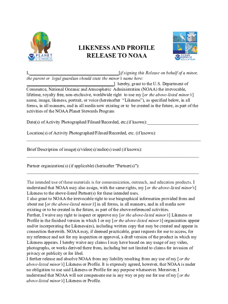 Download the NOAA Likeness and Profile Release form from the official NOAA website.