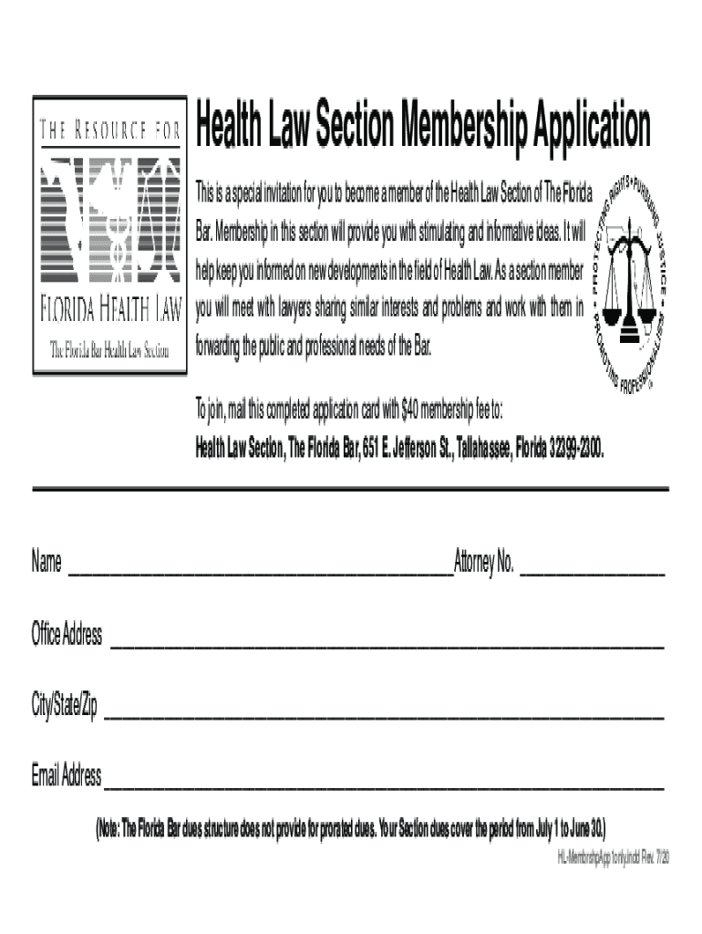 Health Law Section Membership Application This is a special invitation for you to become a member of the Health Law Section of The Florida Bar. Membership in this section will provide you with stimulating