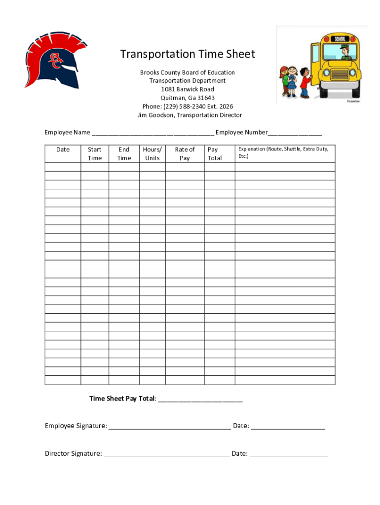 Get the free Transportation Time Sheet