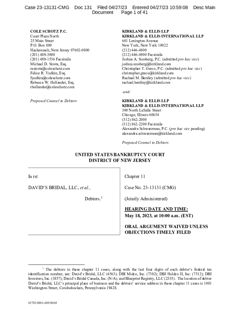 Case 2313131CMGDoc 131 Filed 04/27/23 Entered 04/27/23 10:59:08 Document Page 1 of 41COLE SCHATZ P.C. Court Plaza North 25 Main Street P.O. Box 800 Hackensack, New Jersey 076020800 (201) 4893000 (201)