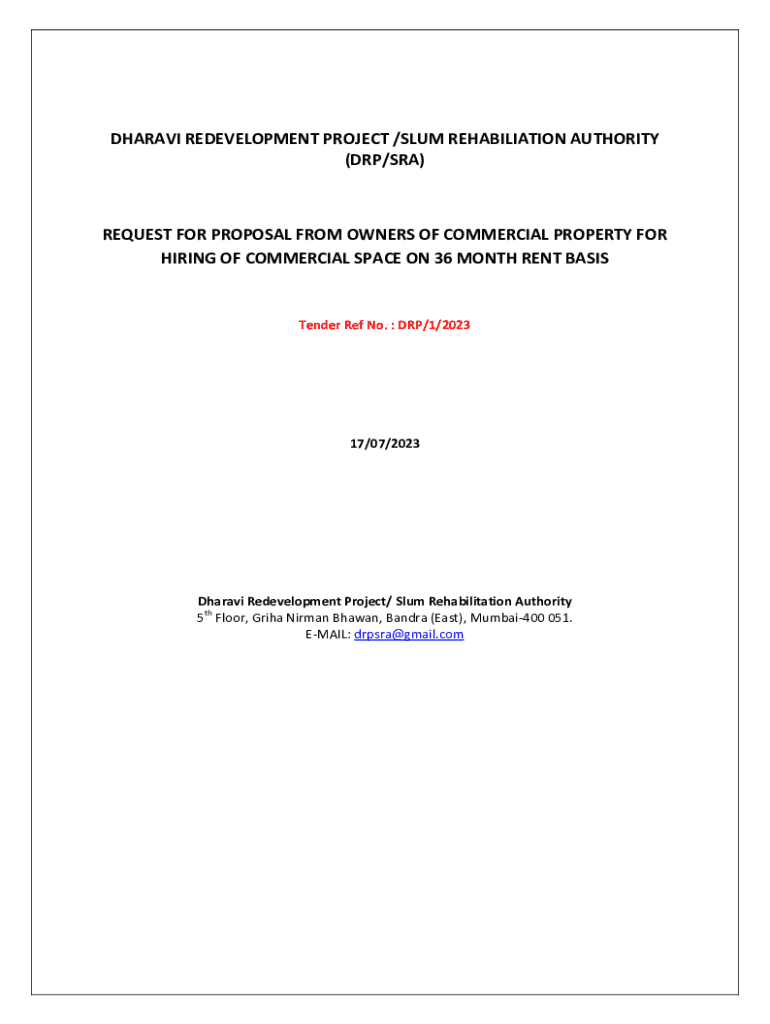 HIRING OF COMMERCIAL SPACE ON 36 MONTH RENT Bartender Ref No. DRP/1/202317/07/2023Dharavi