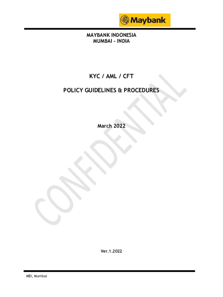 MAYAN INDONESIA MUMBAI INDIA / AML / CFT POLICY GUIDELINES & PROCEDURES March 2022Ver.1.2022MBI, Mumbai. DOCUMENT VERSION CONTROL Version Approval Date Last Update Documented By Reviewed By: : : :1.2022