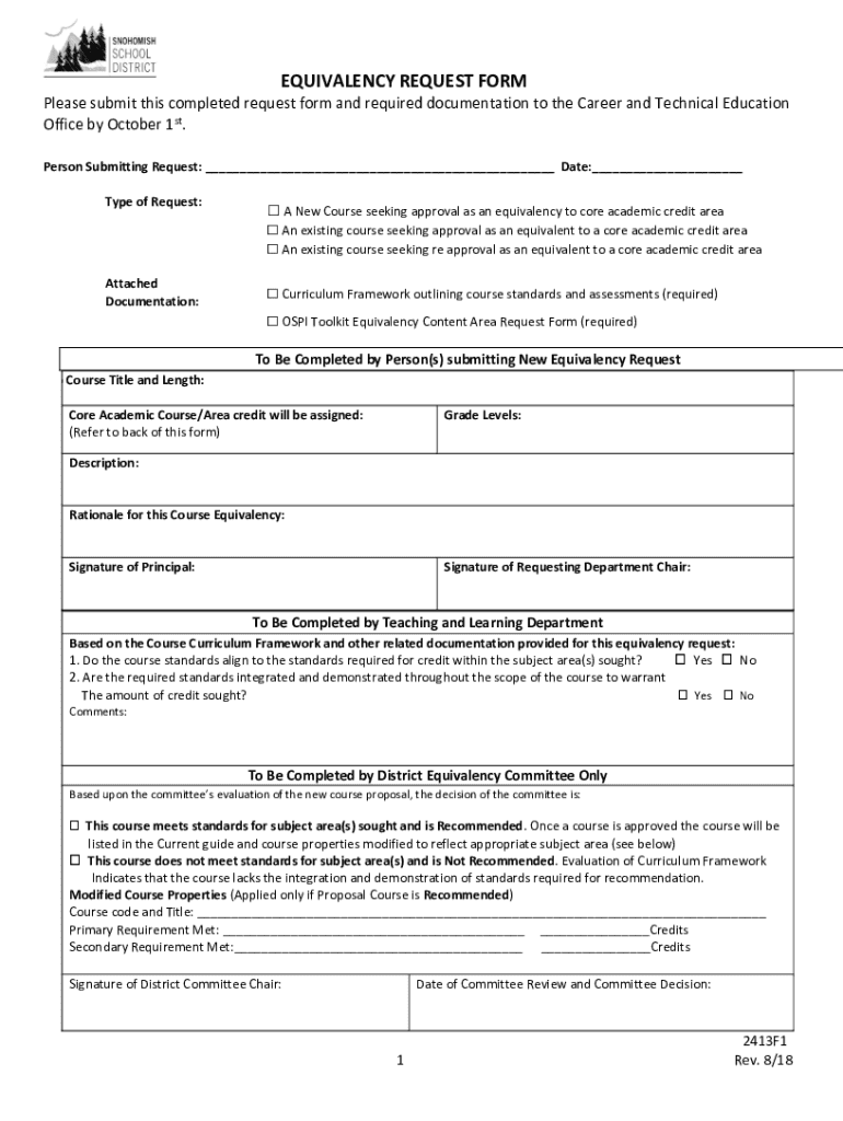 EQUIVALENCY REQUEST FORM Please submit this completed request form and required documentation to the Career and Technical Education Office by October 1st. Person Submitting Request: ___ Date:___ Type