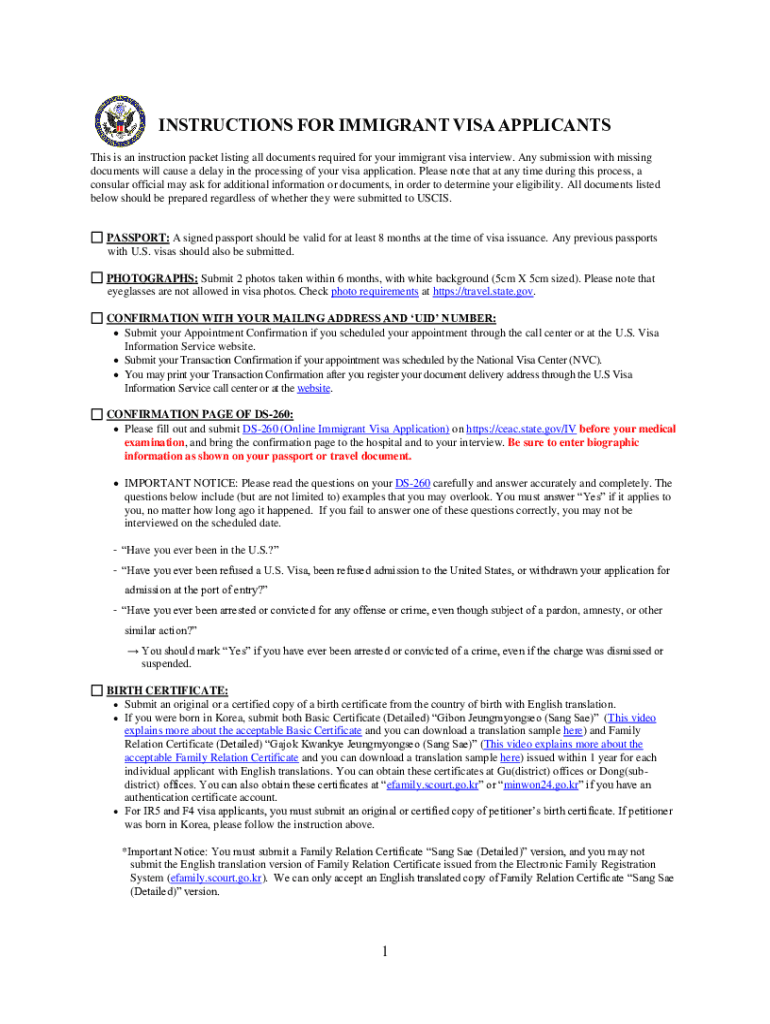 INSTRUCTIONS FOR IMMIGRANT VISA APPLICANTS This is an instruction packet listing all documents required for your immigrant visa interview. Any submission with missing documents will cause a delay