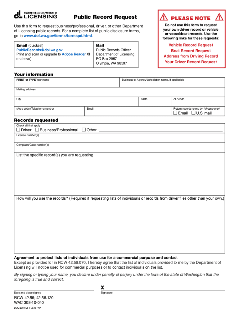 Click here to START or CLEAR, then hit the TAB buttonPublic Record RequestPLEASE Notes this form to request business/professional, driver, or other Department of Licensing public records. For a complete
