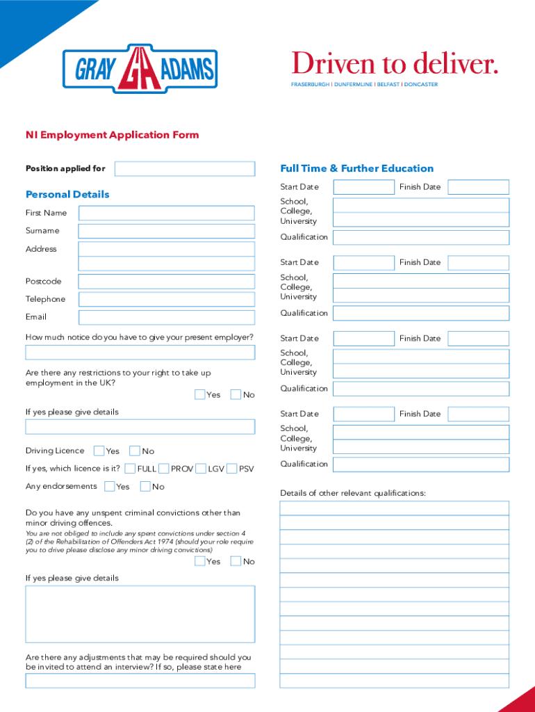 Information such as personal details, employment details, and other relevant information must be reported on NI employment application form.