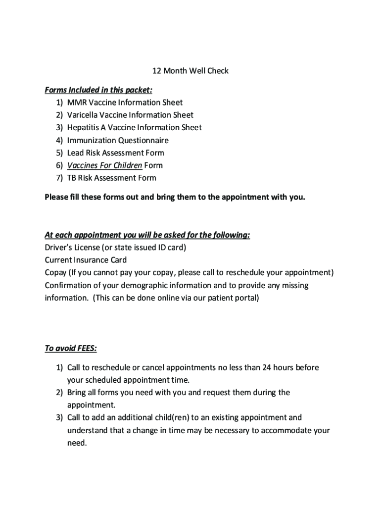 Get the free 12 Month Well Check Forms - A to Z Pediatrics, LLC