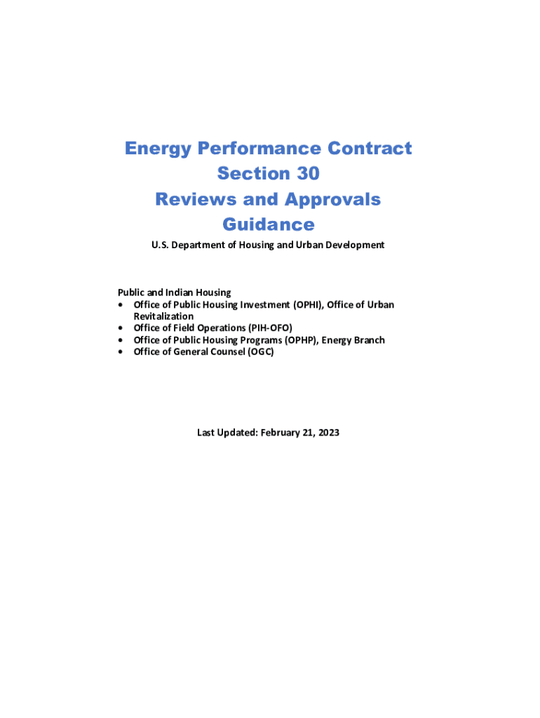 Energy Performance Contract Section 30 Reviews and Approvals Guidance U.S. Department of Housing and Urban DevelopmentPublic and Indian Housing Office of Public Housing Investment (PHI), Office of