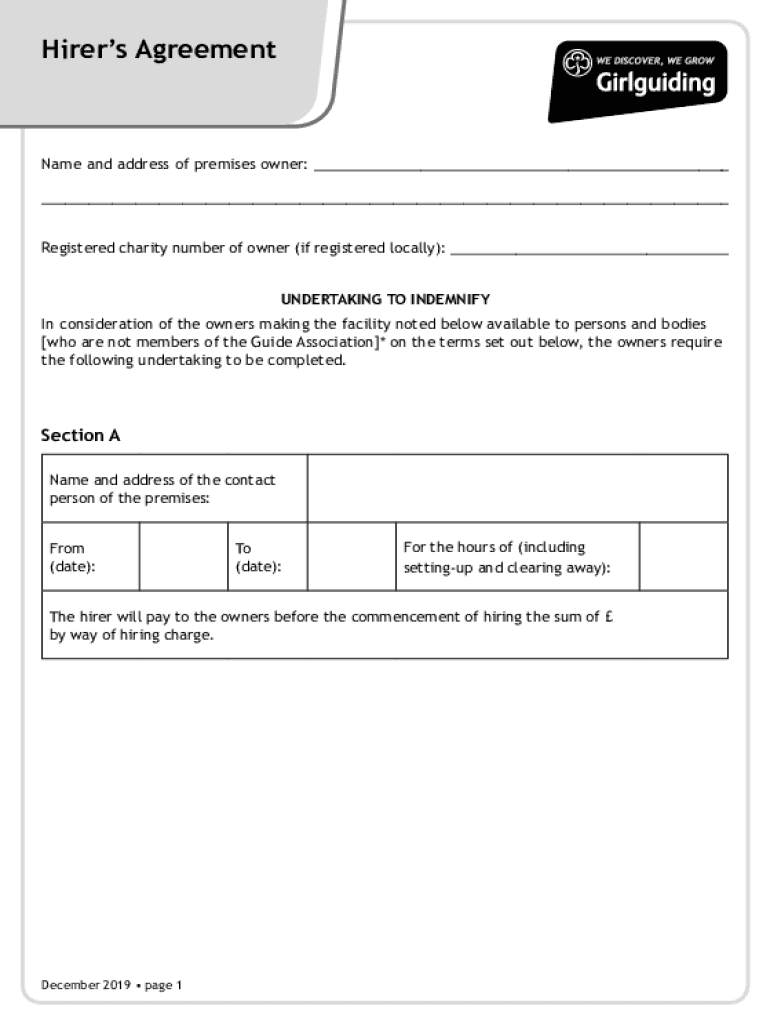 Hikers AgreementName and address of premises owner: ___ ___ Registered charity number of owner (if registered locally): ___ UNDERTAKING TO INDEMNIFY In consideration of the owners making the facility