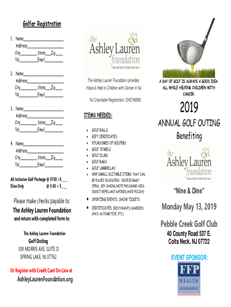 Golfer Registration 1. Name___ Address___ City___ State___Zip___ Tel___Email___2. Name___ Address___ City___ State___Zip___ Tel___Email___The Ashley Lauren Foundation provides Hope & Help to Children