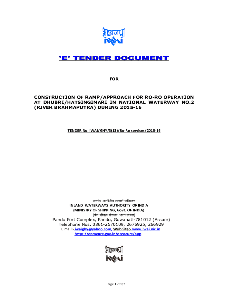 (RIVER BRAHMAPUTRA) DURING 201516TENDER No. IAI/WHY/3(13)/Rory services/201516BaartIya AntdoSaIya Salamanca