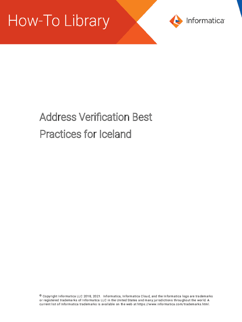 Address Verification Best Practices for Iceland Copyright Informatica LLC 2018, 2021. Informatica, Informatica Cloud, and the Informatica logo are trademarks or registered trademarks of Informatica