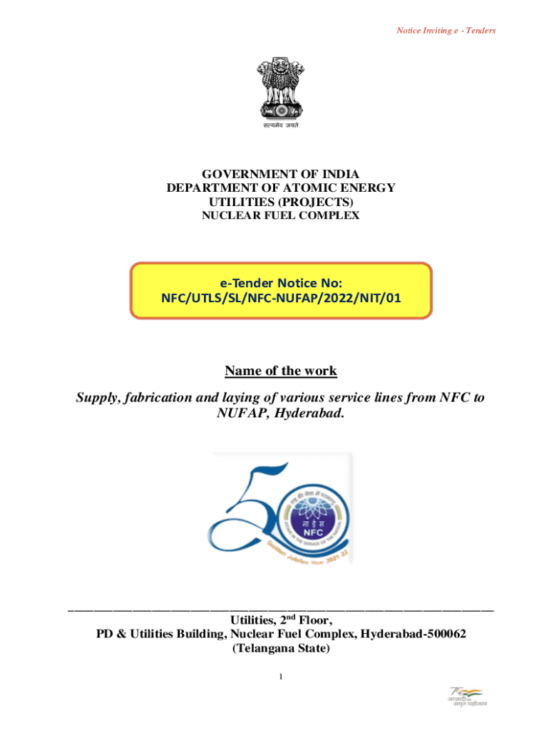 NUCLEAR FUEL COMPLEXeTender Notice No: