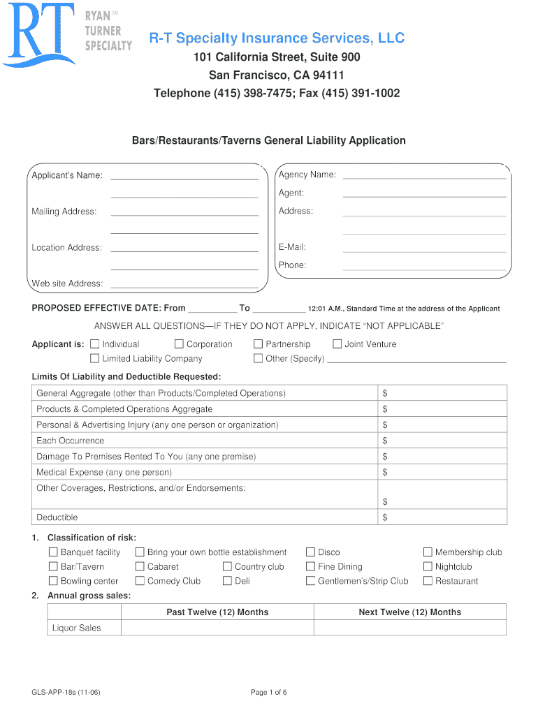 How to Fill Out the Bars/Restaurants/Taverns General Liability Application Online