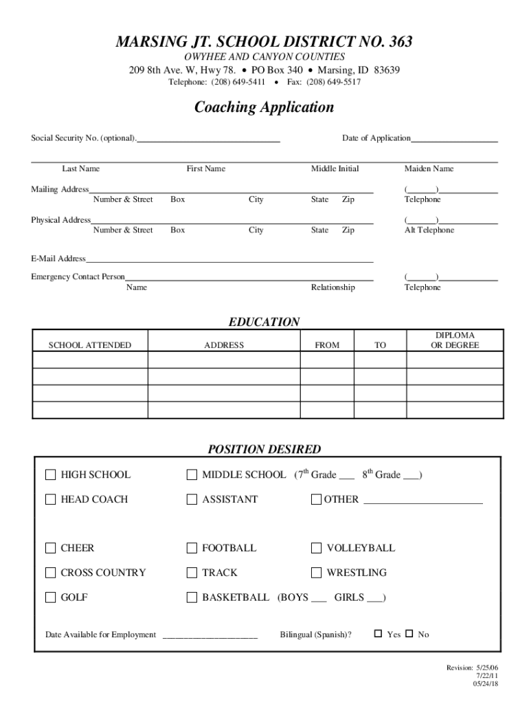 Telephone: (208) 6495411Fax: (208) 6495517Coaching Application