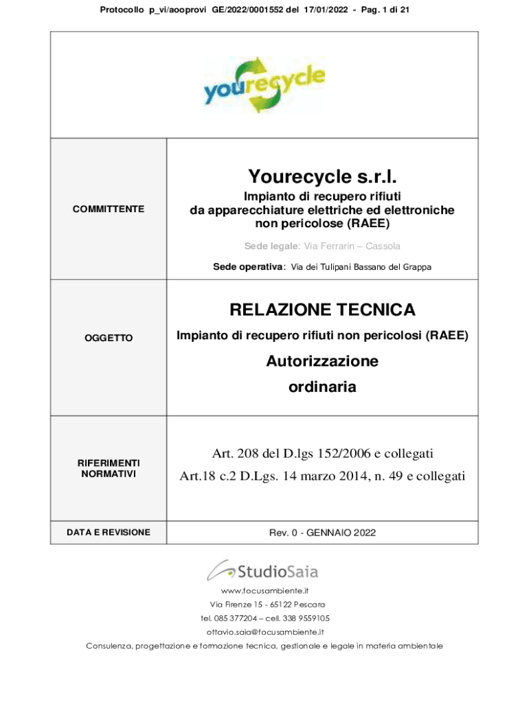 Protocol lo p_vi/approve GE/2022/0001552 Del 17/01/2022 PAG. 1 DI 21Yourecycle s.r.l.