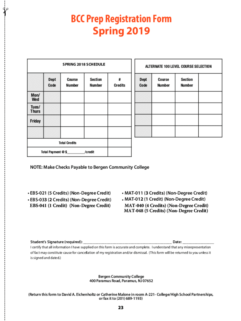BCC Prep Registration Form