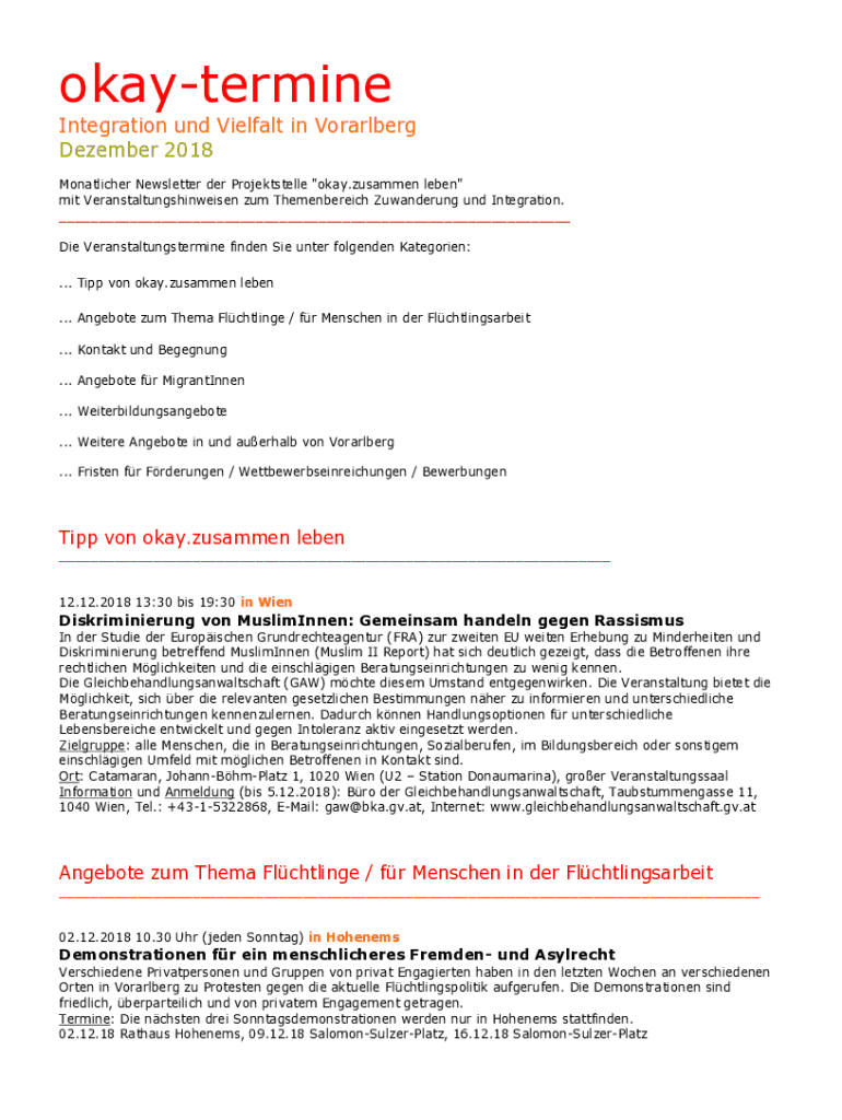 MIT Veranstaltungshinweisen sum Themenbereich Wandering UND Integration.