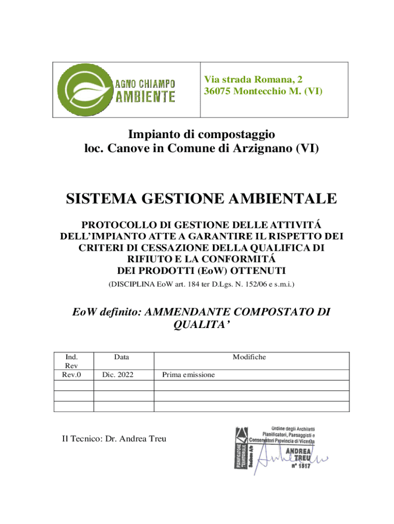 36075 Montecchio M. (VI)Implant DI compostaggio