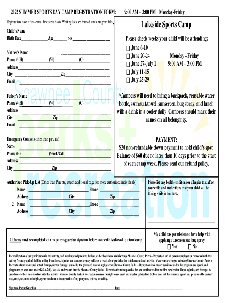 Get the free 2022 SUMMER SPORTS DAY CAMP REGISTRATION FORM: