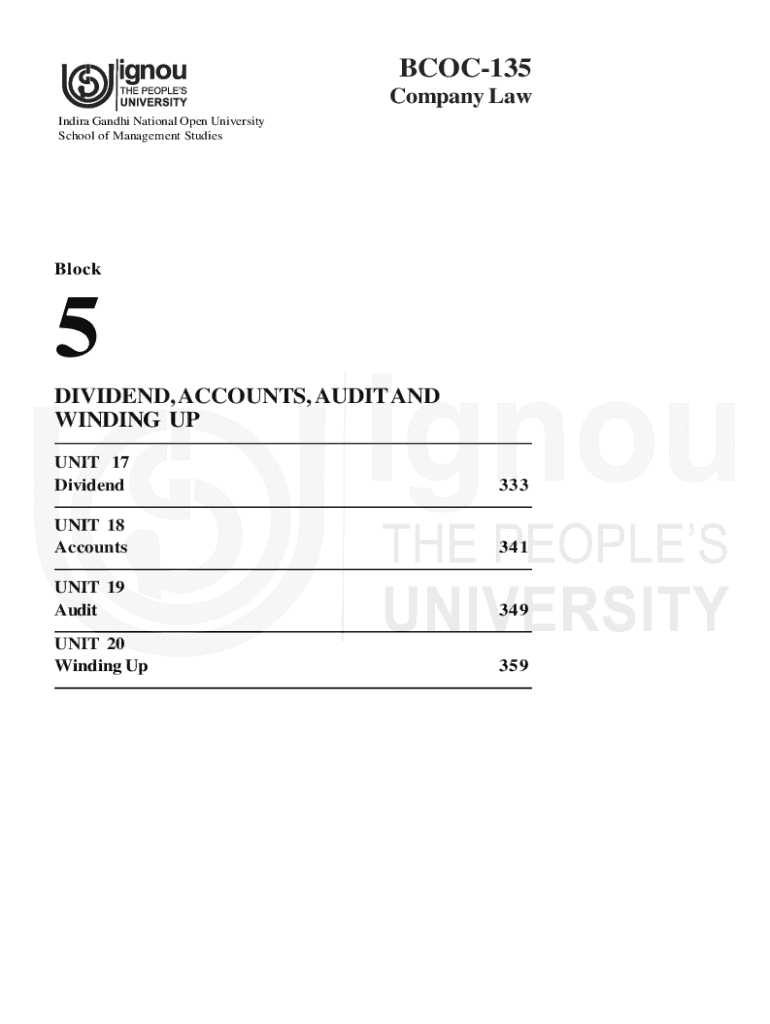 Get the free Block-5 Dividend, Accounts, Audit and Winding UP - egyankosh ac