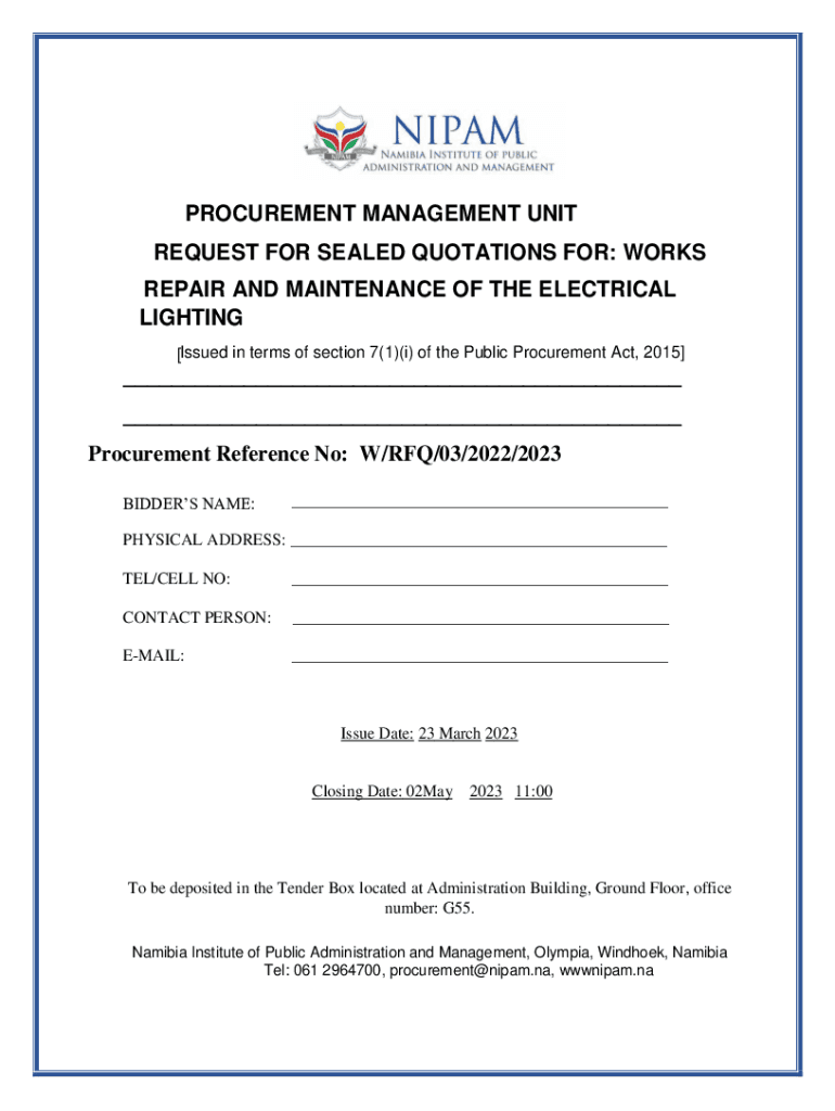 PROCUREMENT MANAGEMENT UNIT REQUEST FOR SEALED QUOTATIONS FOR: WORKS REPAIR AND MAINTENANCE OF THE ELECTRICAL LIGHTING [Issued in terms of section 7(1)(i) of the Public Procurement Act, 2015]___ ___
