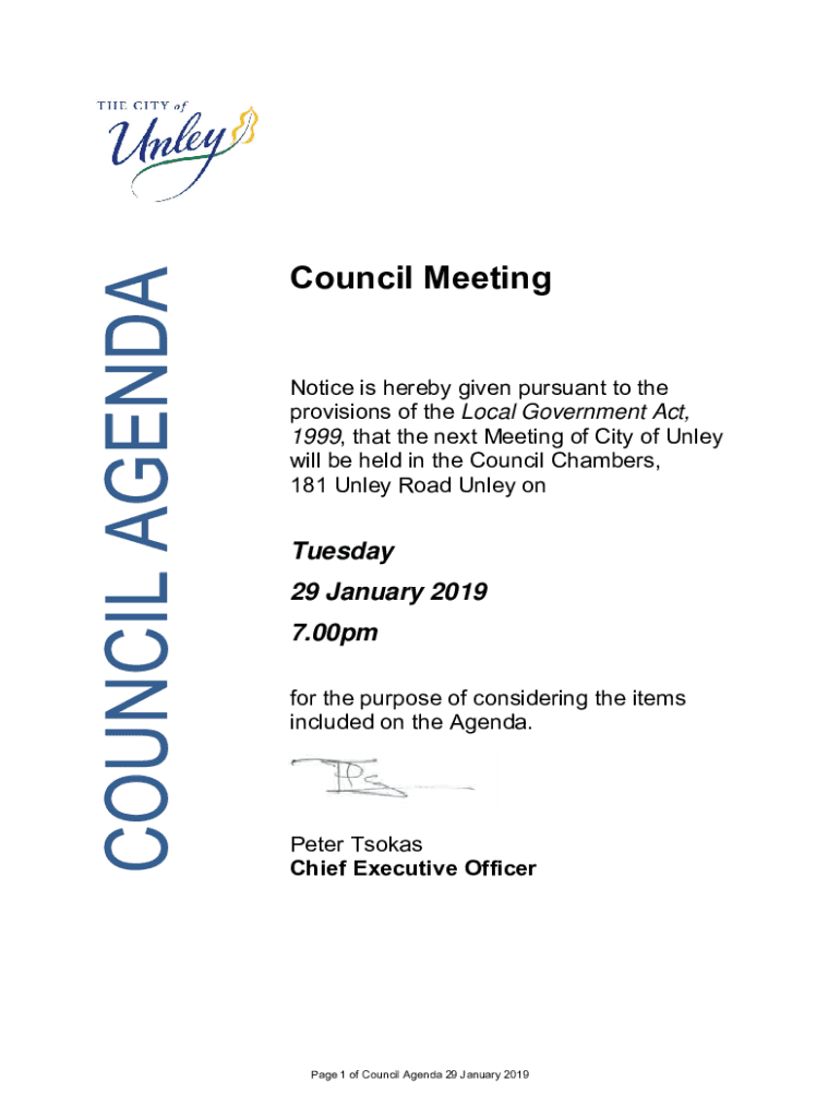 Council MeetingNotice is hereby given pursuant to the provisions of the Local Government Act, 1999, that the next Meeting of City of Ulna will be held in the Council Chambers, 181 Ulna Road Ulna on