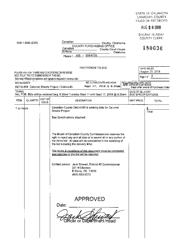 STATE OF OKLAHOMA CANADIAN COUNTYWIDE OR RECORDED AUG2 0 20t8SHERRY MURRAY COUNTY CLERK Saar 14040 (2000)CanadianCounty, Oklahoma County PURCHASE ING 3 OFFICE Canadian County Court Housetop aerophone:(1806S6Oklahoma40529s612s)INVITATION
