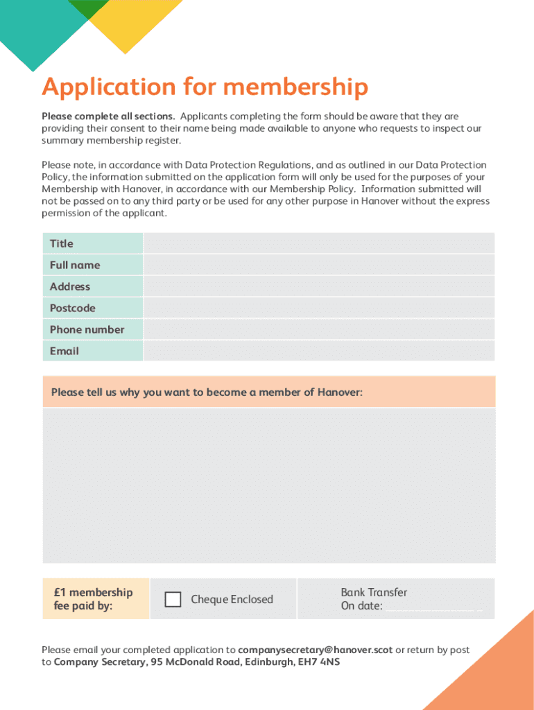 Get the free Hanover Scotland Become a Member Application Form