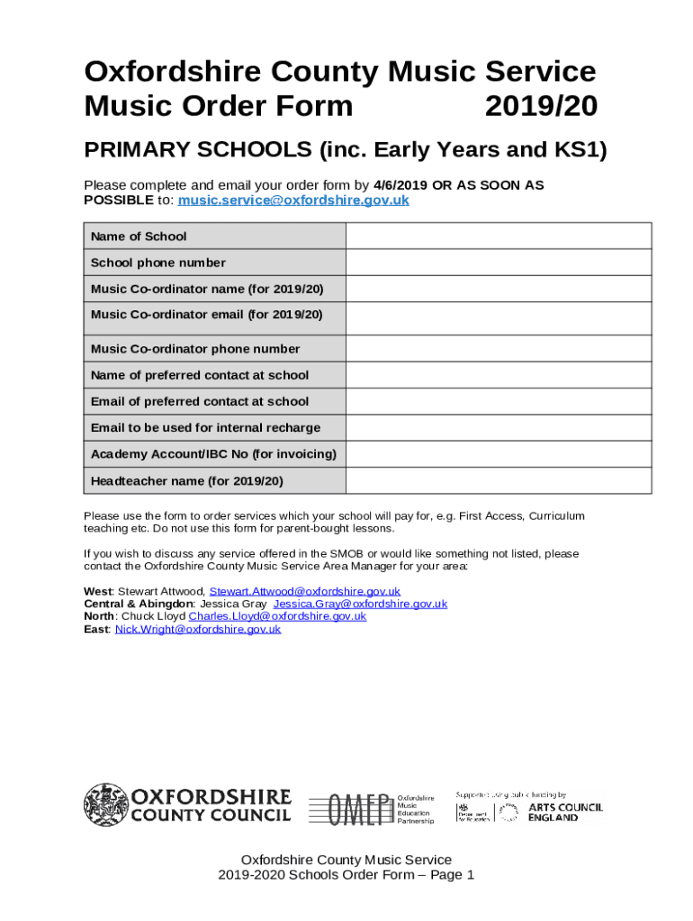 What is Oxfordshire County Music Service Music Order 2019/ ... - schools oxfordshire gov Form?