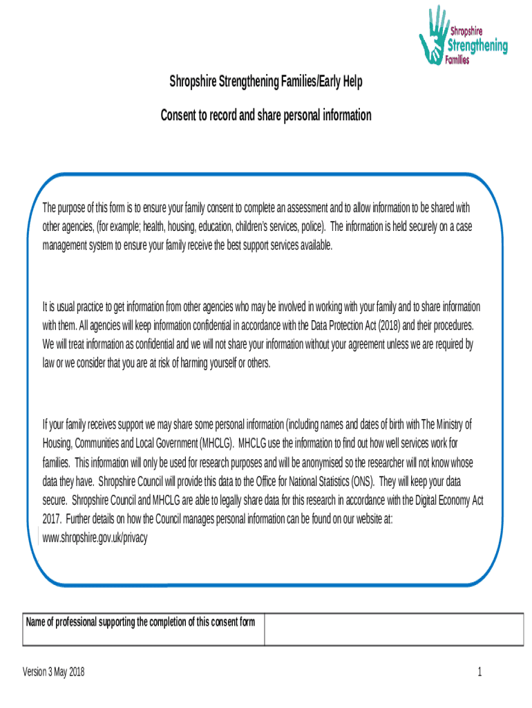 Shropshire Strengthening Families/Early Help Consent to ...: frequently asked questions