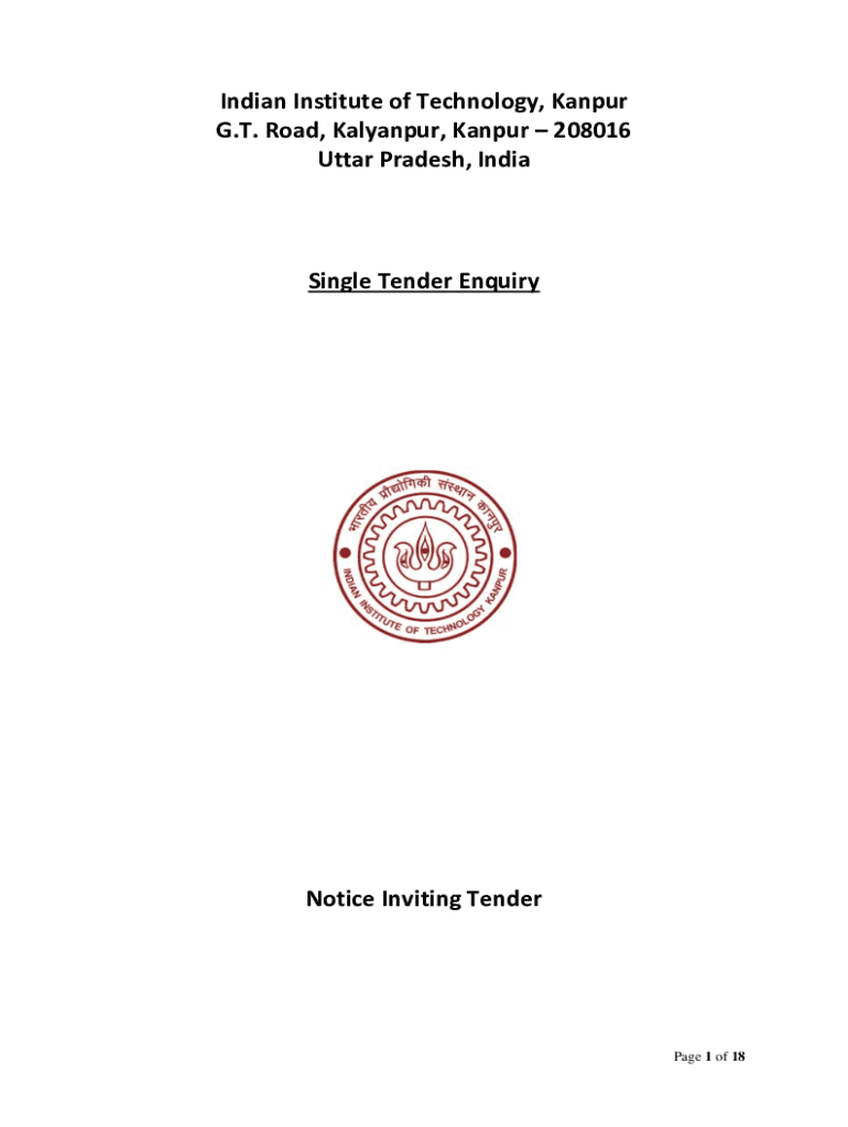 Uttar Pradesh, IndiaSingle Tender EnquiryNotice Inviting Tender Page 1 of 18Tender Details